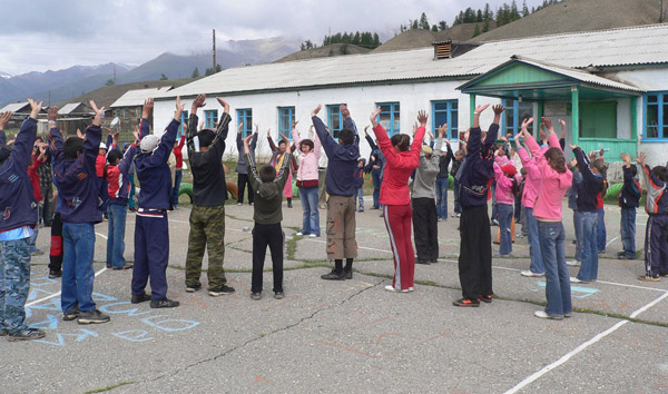俄罗斯法轮功学员来到偏远农村教学生炼法轮功五套功法