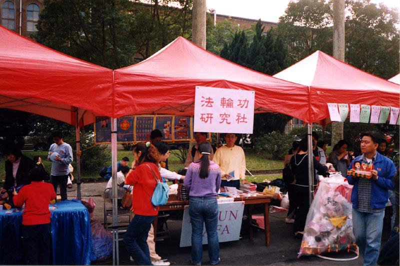 法轮功学员在台湾大学校庆活动中,介绍法轮功 2001-11-20