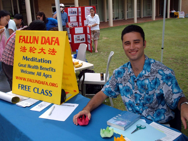西悉尼大学迎新周学员们参加了这一活动法轮大法的展位2006-2-27