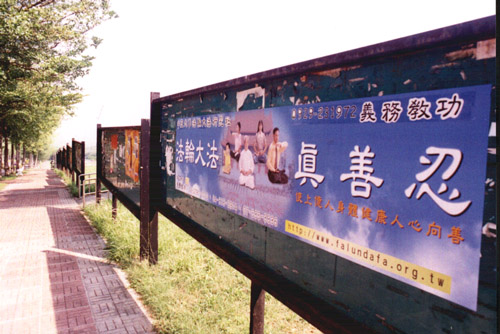 台湾中正大学举办“法轮大法周”系列活动--图为校园内的海报 2001-05-21