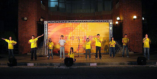 台湾学员在成大迎新活动上展现大法的美好图为演示优美柔和的五套功法2006-9-20至21