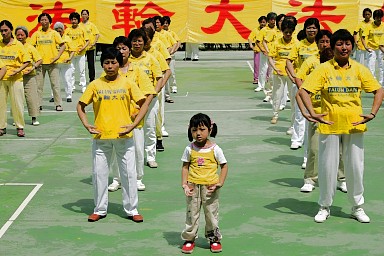 法轮大法洪传台湾—图为在台北安溪国小校庆展示功法