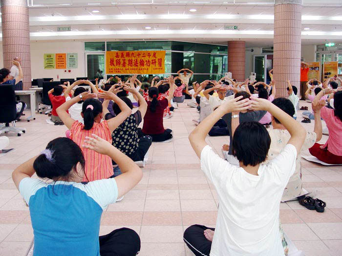 法轮功在台湾校园遍地开花,图为各地法轮功研习营教功班