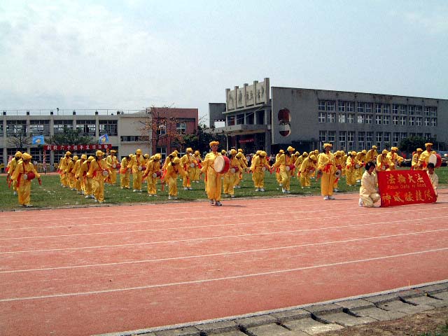台湾苗栗县法轮大法学员组成的神威腰鼓队受邀参加六合国民小学创校60周年的校庆活动