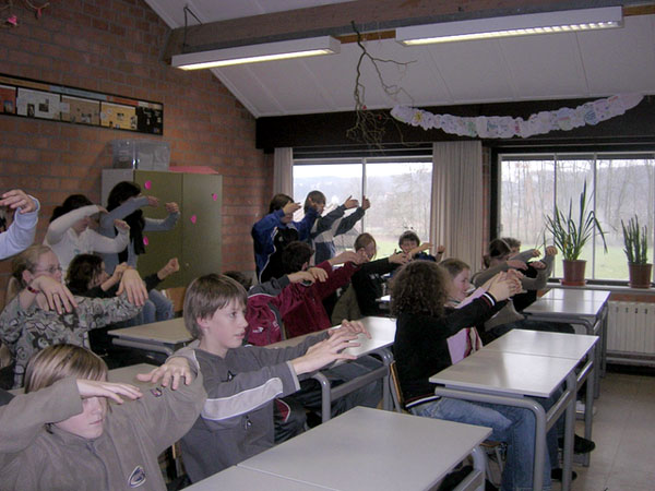 比利时法轮功学员受邀到一家学校洪扬法轮功并说明功法