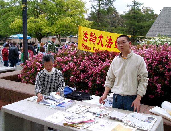 法轮功学员在戴维斯加大分校野餐日中讲真相揭露中共对法轮功的残酷迫害2006-4-22