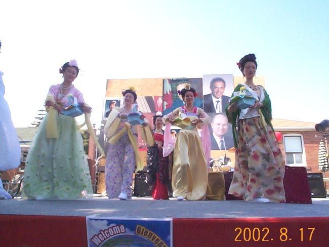 多伦多学员应邀在加拿大执政党野餐会上演出 很多媒体到场采访 加拿大国家电视台CBC作了现场转播 加拿大 2002-8-17