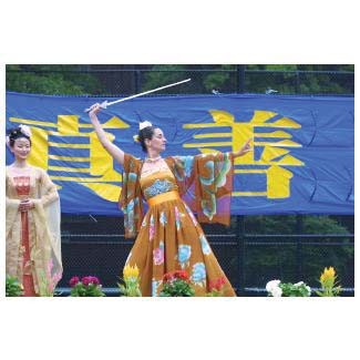 法轮功学员在纽约庆祝“世界法轮大法日”活动中的的舞蹈表演  美国  2003 台北法轮功学员在“正法之路”音乐会上表演  台湾 2002-2-28