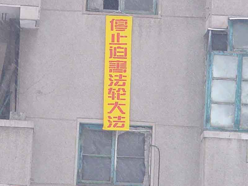 某市法轮功学员在新年前后用横幅讲真相 01/30/2001