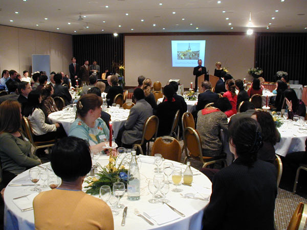法轮功学员在日内瓦召开大型答谢招待会,感谢社会各界对法轮功的大力支持 瑞士 2001-4-18