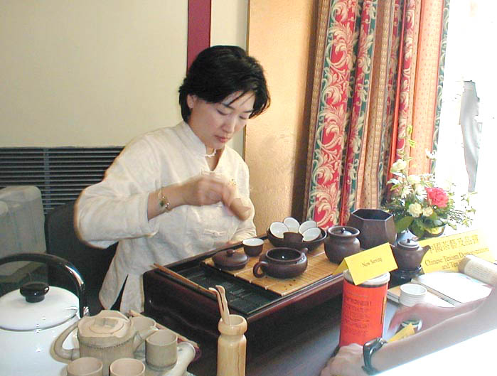 “法轮功之友”在美国国会举办招待会答谢各界支持,图为学员表演的茶道 美国 2002-5-23