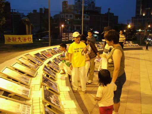 台湾桃园7.20追悼会暨真相摄影展 图为民众来欣赏摄影展及了解法轮功真相