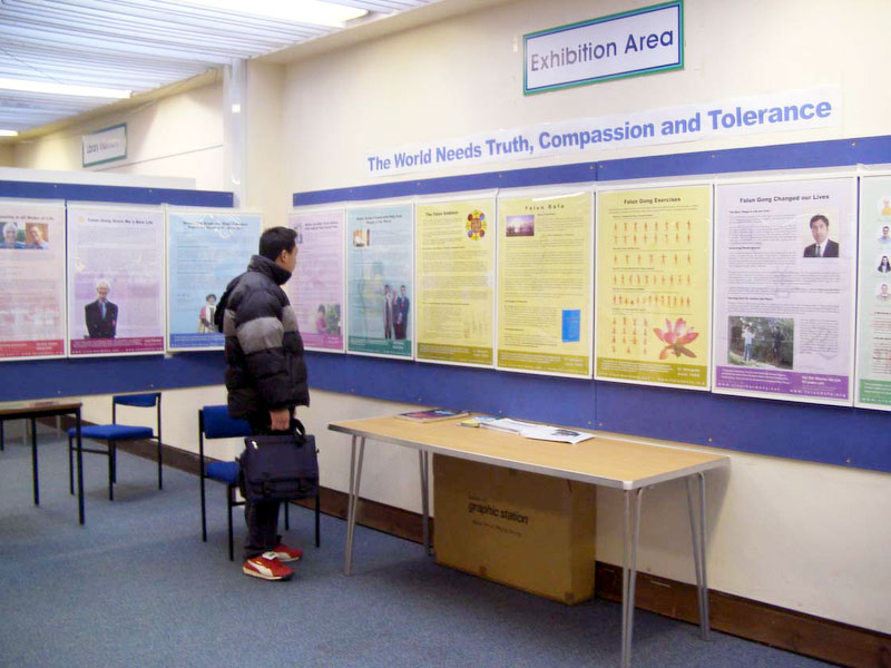 “法轮大法在英国海报展”在英国剑桥市中心图书馆展出