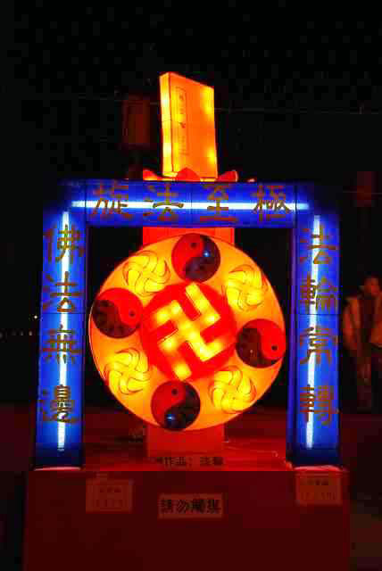 法轮功学员参加嘉义县政府举办庆祝元宵节的灯会图为旋转的法轮花灯