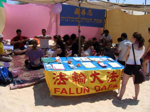 以色列法轮功学员应邀在布姆贝米拉节日讲真相,向游人们讲述中共对法轮功的残酷迫害