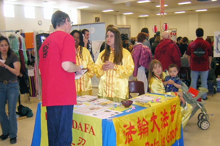 法轮功学员参加新墨西哥圣达菲日本节活动图为学员在展位上介绍大法的美好2007-4-14
