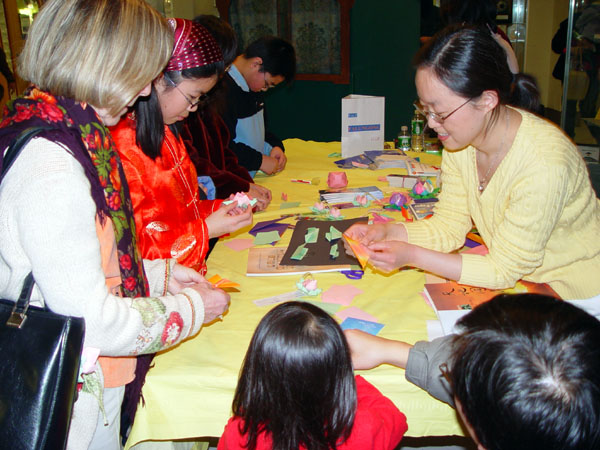 康州华人举办第五届文艺演出及传统文化展耶鲁大学法轮功学员教折纸莲花2006-3-5