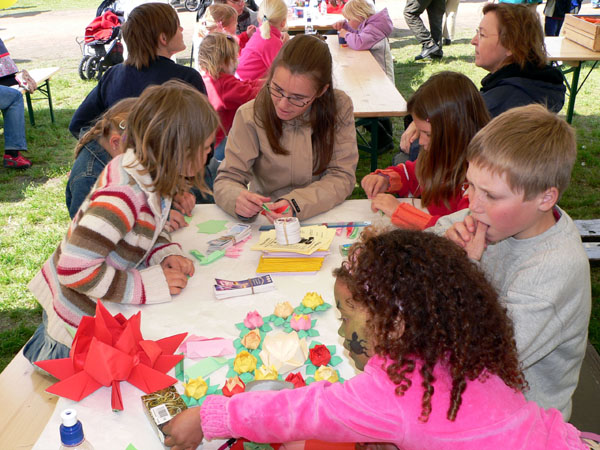 挪威法轮功学员参加奥斯陆儿童游园会 使小朋友们学做莲花的同时了解发生在中国的故事