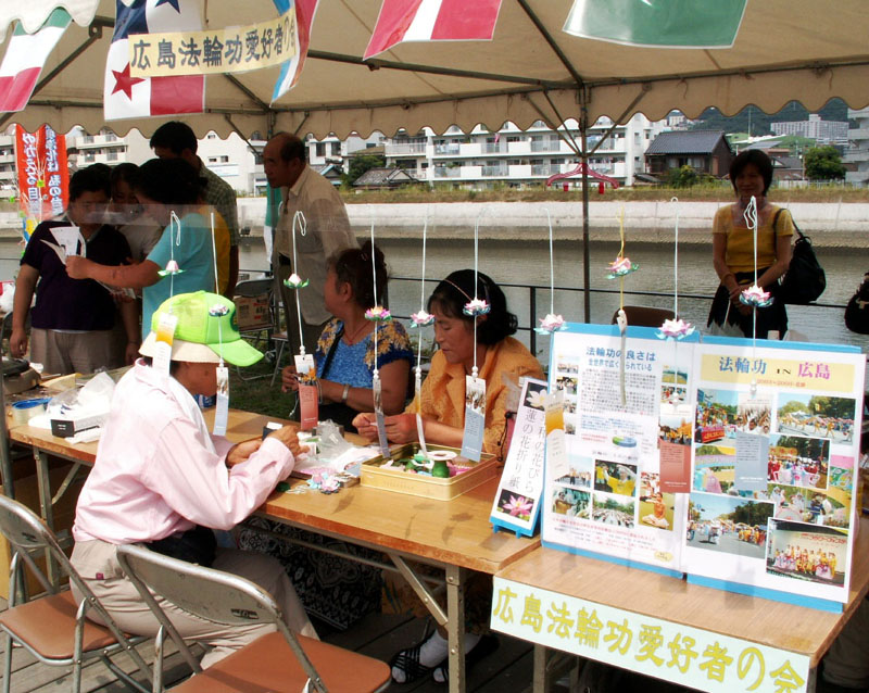 法轮功学员参加日本广岛市习俗“河童祭典”节日活动图为纸莲花传播法轮功真相2007-9-9