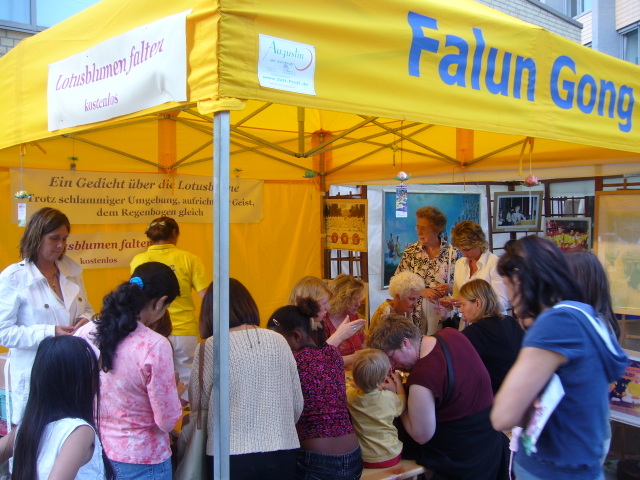 德国法轮功学员参加汉堡的文化节庆典,图为大法的展位吸引了许多游客2006-9-15