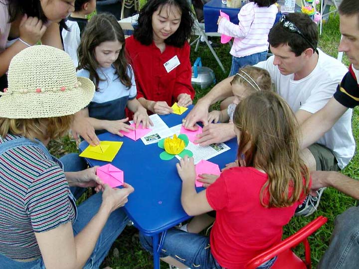 奥斯汀学员为园艺花卉展带来了美丽且象征和平的的纸叠莲花 通过“和平的花瓣”讲述正在中国进行的迫害法轮功真相