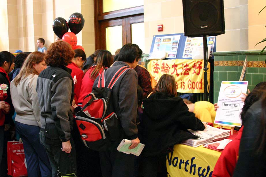 华盛顿州学员参加西雅图中国城新年庆祝 法轮功学员们的摊位备受欢迎