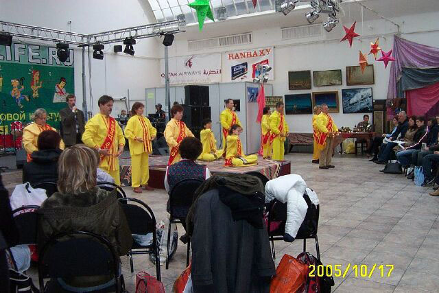 俄罗斯法轮功学员在莫斯科第四届国际文化节洪法讲真相 图为功法展示