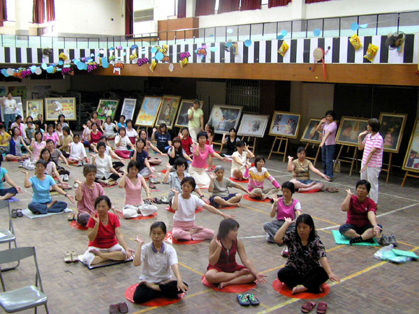 台湾虎尾高中举办法轮功教师研习营活动 图为教师们在学炼五套功法 2006-7