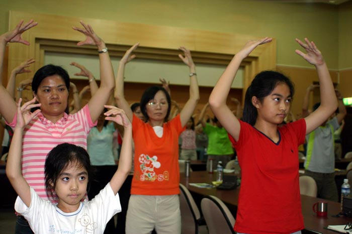 台湾法轮功研习会在桃园平镇市图书馆展开图为研习会上民众与教师们学炼五套功法2007-7-10至11