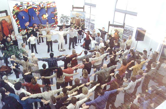 意大利法轮功学员在都灵国际妇女年会上教炼法轮功功法 2002-11-22--24