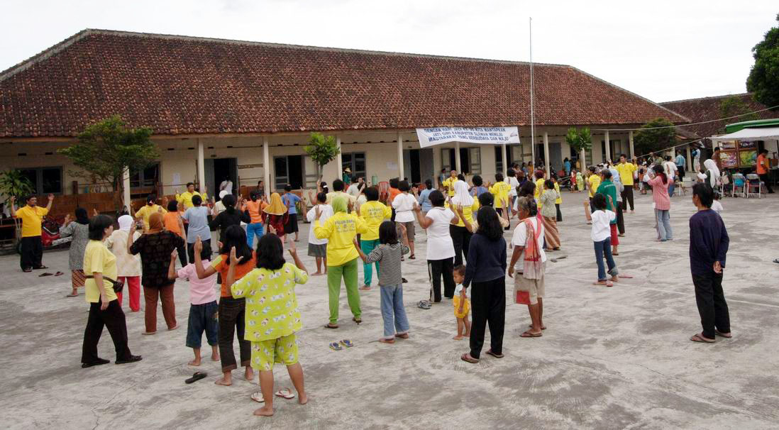 法轮功学员为印尼墨拉比火山收容所的难民免费教功 2006-5