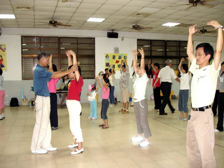 台湾北桃园2006年夏天法轮功教师研习营,图为来自各校的老师们专心学功