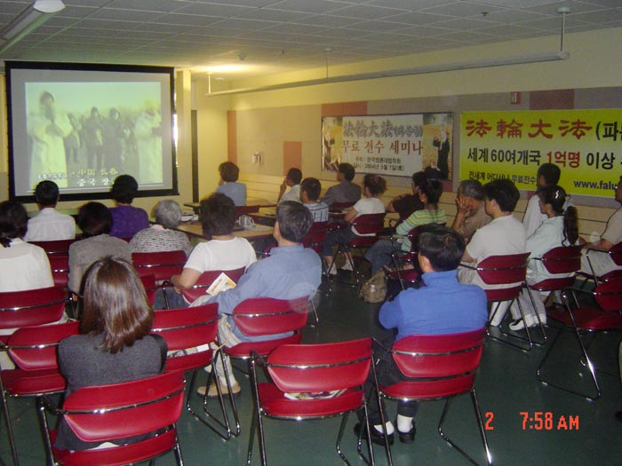 法轮功学员在洛杉矶市韩国城公共图书馆举办韩文法轮大法介绍班 2004-05-01