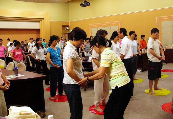 台湾法轮功研习会在桃园平镇市图书馆展开图为研习会上民众与教师们学炼五套功法2007-7-10至11
