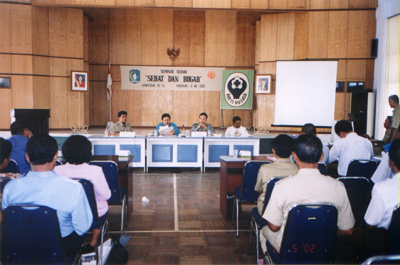 印尼学员在纪念世界第五十四届健康日西加省卫生局的座谈会中,教炼五套功法 2002-05-13