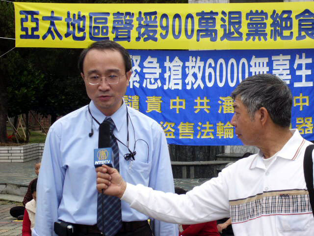 台湾嘉义学员中正大学教授揭露苏家屯活摘器官的黑幕,图为:接受媒体采访。06-3-21