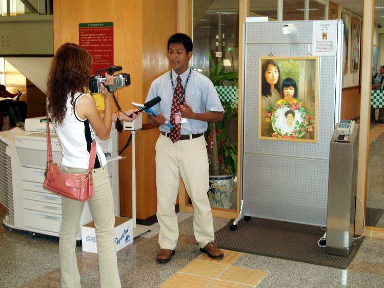 台湾东华大学真善忍国际美展广受好评 图为花莲当地媒体前来采访