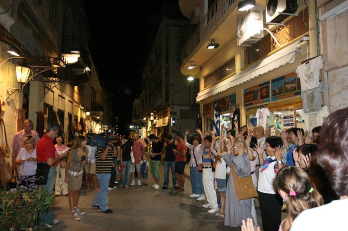 台湾法轮功学员前往希腊雅典在点燃人权圣火期间洪法讲真相图为STAR电视台采访学员演示炼功