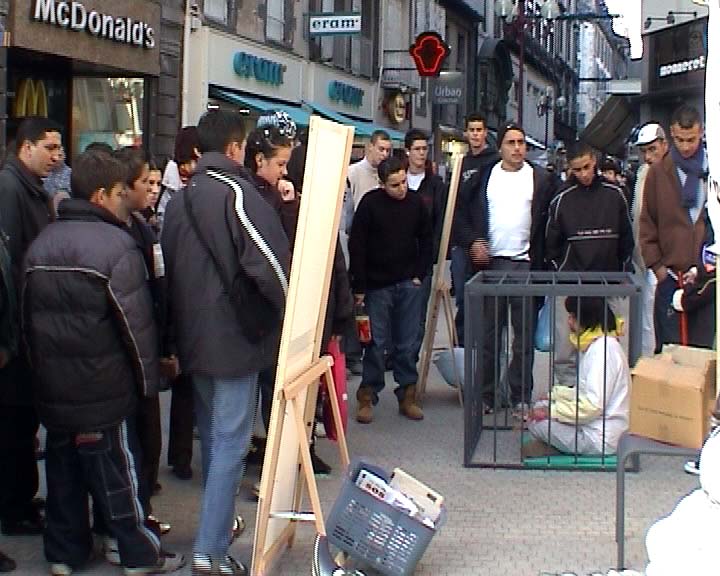 法国法轮功学员在克莱蒙-费郎举行揭露江氏集团残害法轮功学员的酷刑展, 震撼人心 2004-11-20