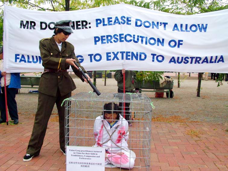 澳洲法轮功学员外交部前举行反酷刑展,呼吁关注人权