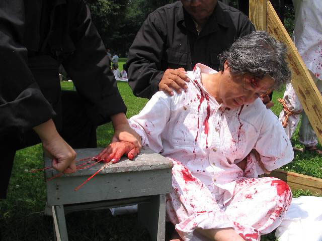 法轮功学员在波士顿举办反酷刑展,彻底揭露在中国发生的对法轮功的残酷镇压 2004-07-29