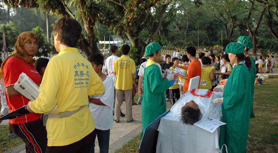 马来西亚学员于槟岛市政府公园揭露中共活摘法轮功学员器官的罪行 2006-7-23