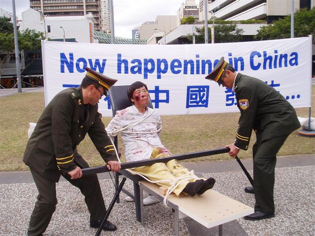 澳洲法轮功学员在布里斯本乔治国王广场举办反酷刑展,吁制止江氏集团恐怖主义暴行 2004-07-10