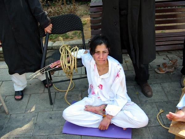 以色列法轮功学员举办反酷刑展,演示中国法轮功学员遭受的各种酷刑迫害 2004-09-04