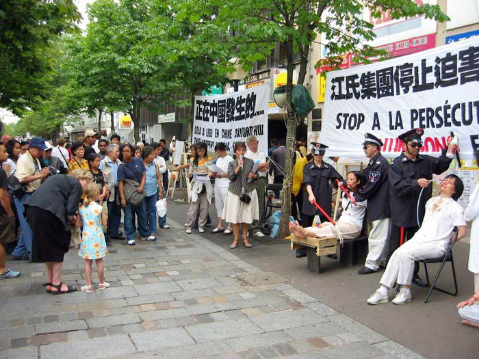 法国法轮功学员在巴黎中国城举办反酷刑展