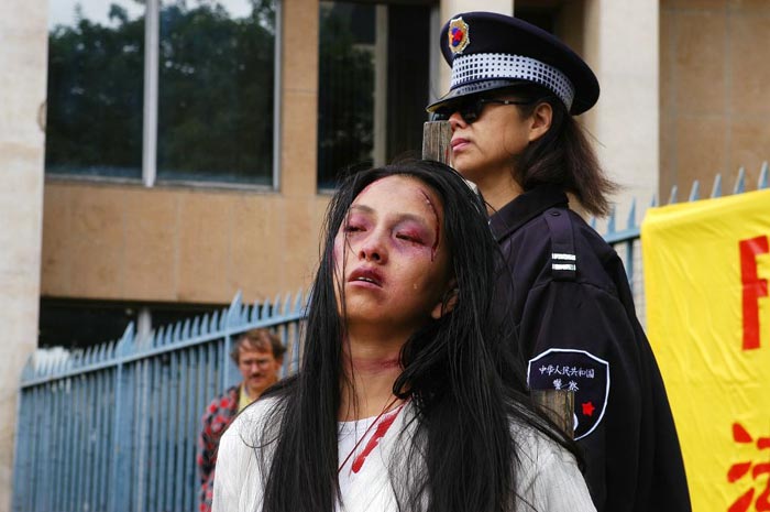 法国法轮功学员在巴黎的中国城(美丽城),举办反酷刑展,揭露江氏集团恐怖主义暴行 2004-09-24