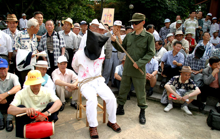 韩国法轮功学员再现同修在中国遭受酷刑场面, 呼吁制止迫害, 震撼人心 2004-07-10