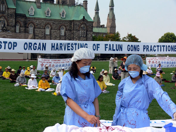 亚太峰会临近各界促加拿大总理关注中国人权问题图为学员在国会山前集会摸抑活摘器官2007-8-29