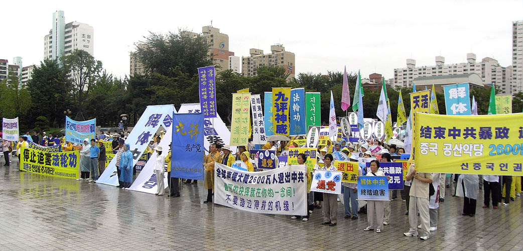 法轮功学员在韩国安阳举办声援二千六百万中国民众三退的集会游行活动2007-9-16