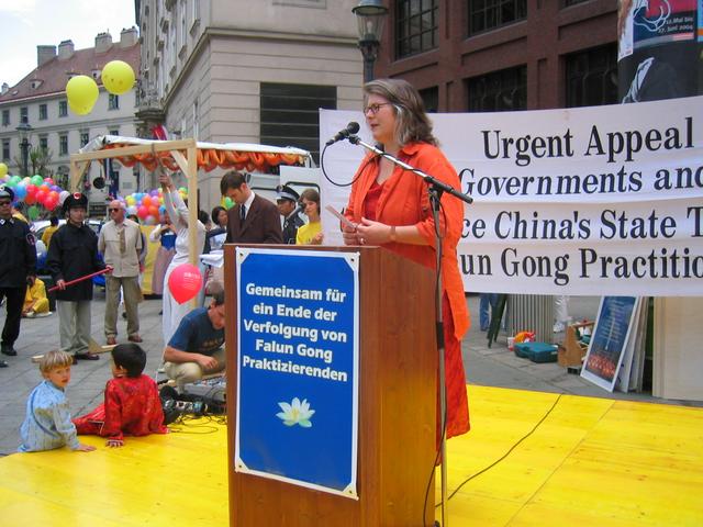 欧亚三十多个国家的法轮功学员在维也纳集会, 呼吁停止镇压法轮功 奥地利国会人权委员会主席到场支持 2004-06-19